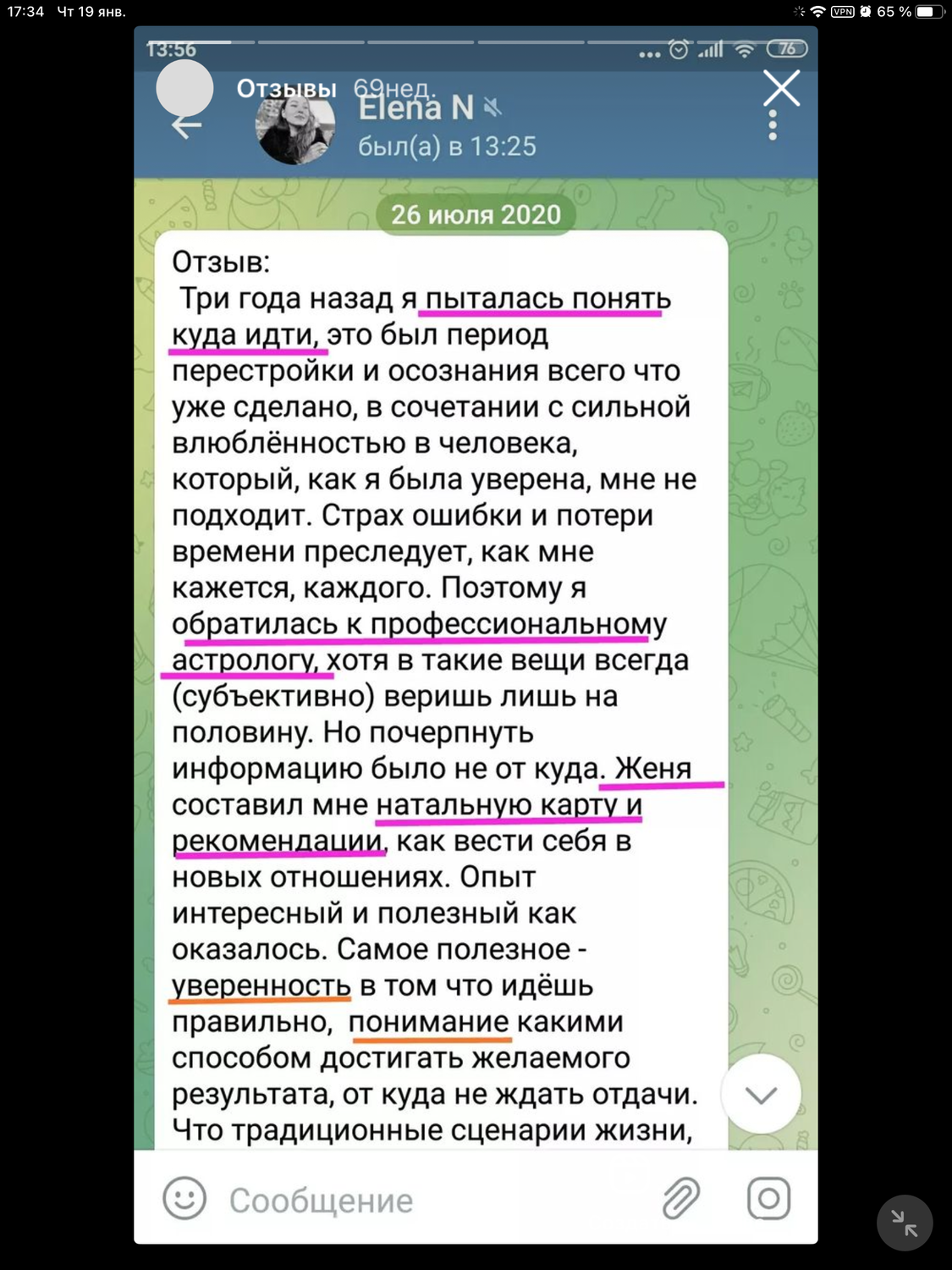 Так что цена за персональный гороскоп, совместимость и прогноз не может стоить 500 р, 1500 р или 2000 р. Или в противном случае, астролог не уважает свое время и расходует очень много энергии, не получая адекватно ее взамен.